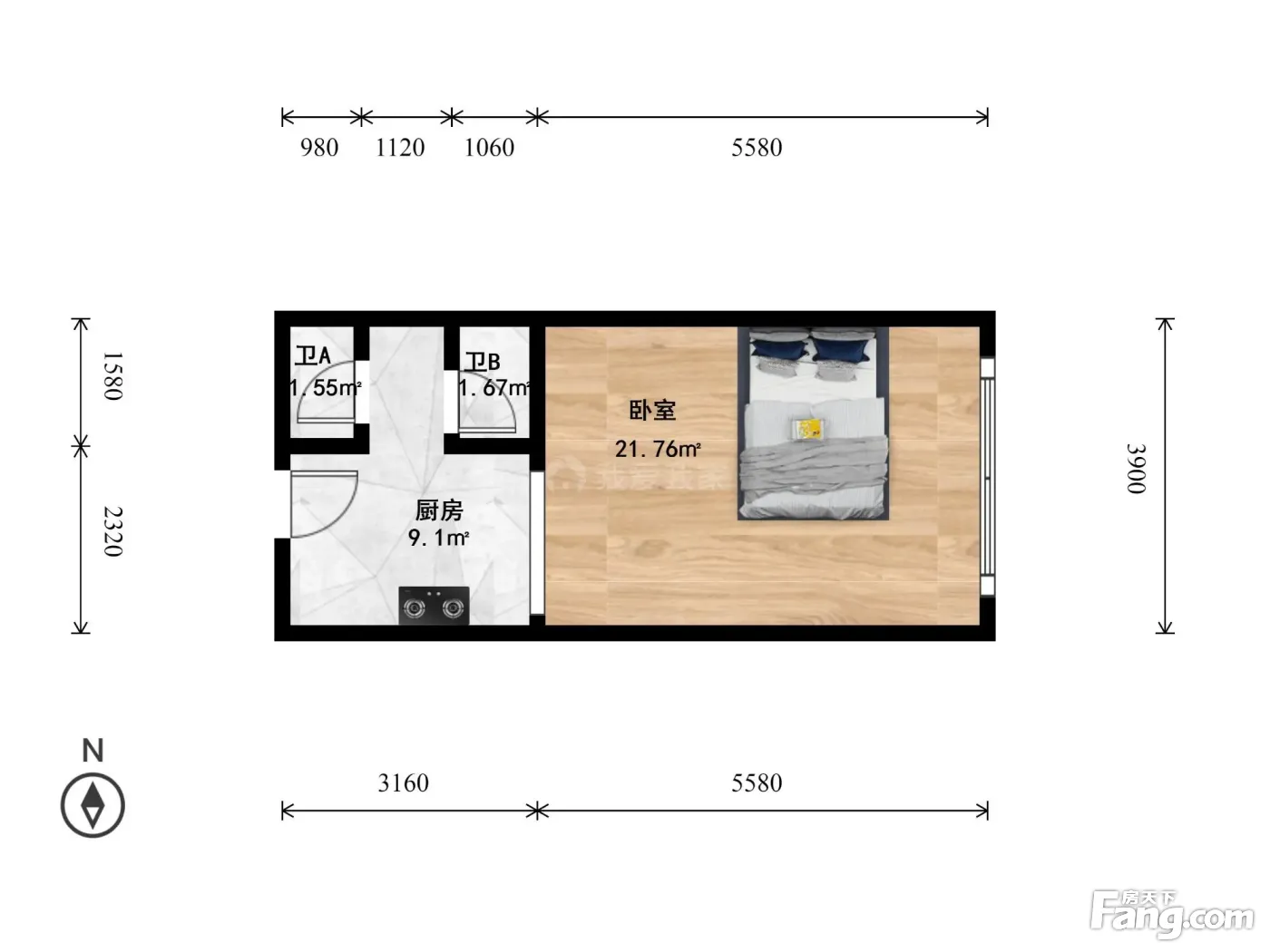 1室2卫