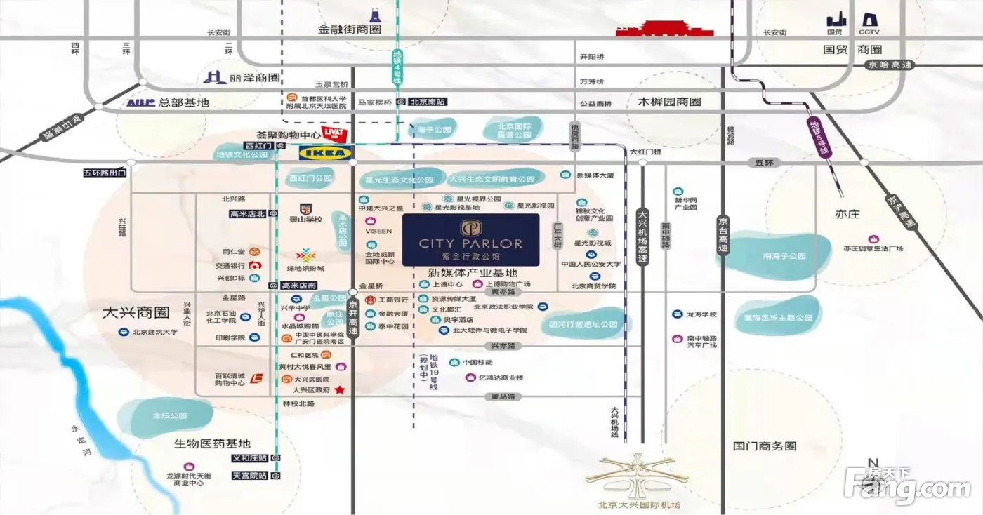 周边配套: 教育:北京小、大兴中、国教院附属实验校,京中大兴校,师附学、兴华中、大兴一幼 超市:物美超市、永辉超市,世纪华联超市,阳阳超市,家家乐超市 商场:宜家荟聚购物中心,绿地缤纷城,火神庙购物中心,龙湖时代天街 医院:广安门中医院、天坛医院新院区、北京儿童医院(大兴院区)、北京大学一医院 银行:交通银行、中国工商银行、农业银行、中国银行、建设银行 公园:大兴滨河森林公园,清源公园、小龙河绿地、念坛公园交通情况