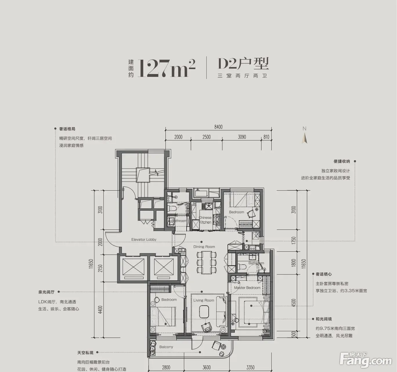 房屋拥有相对宽松的尺寸,布局通透,动静分离,设计豪华