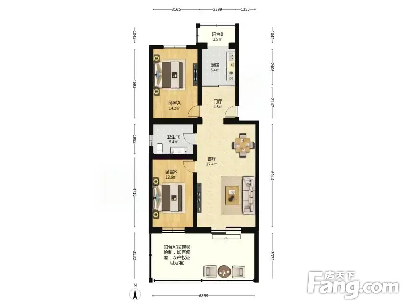 恒富中街7号院 2室1厅 98.15平