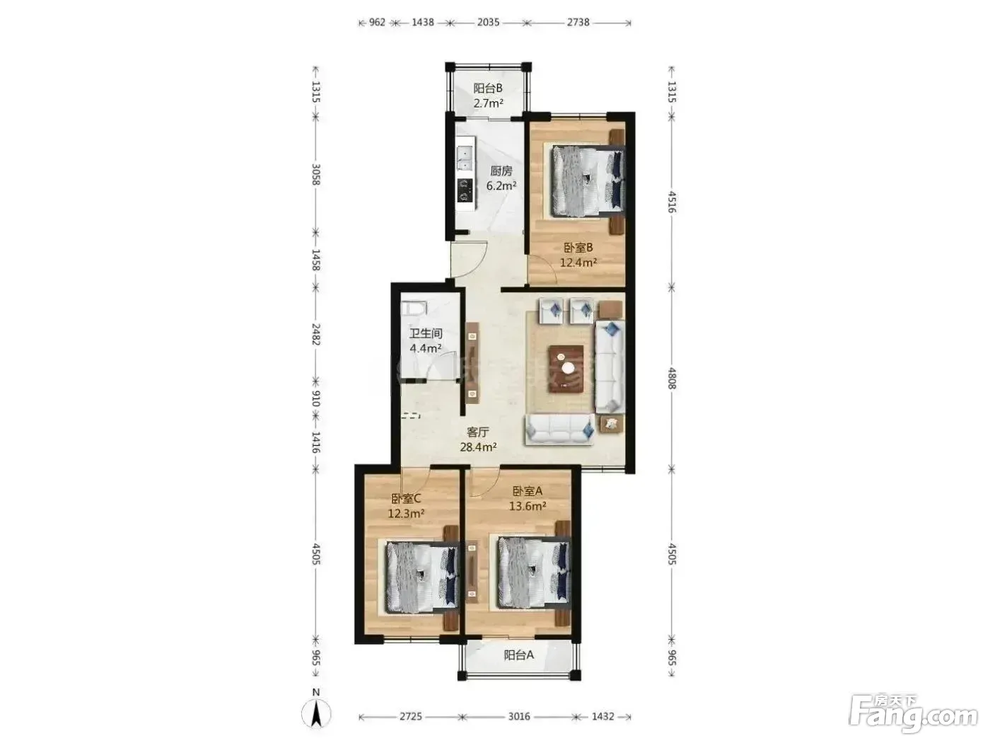 户型介绍:户型方正,没有浪费面积!