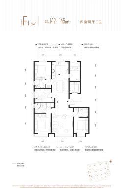 户型齐全,主打全明格局,采光充足,动静分离,主卧套间,U型厨房,干湿分离四居