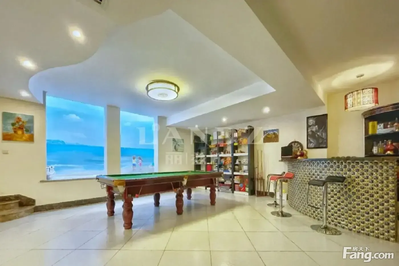 这套房真实在售,我是负责格拉斯小镇的齐胜,小区共77套二手房源在售,我都比较了解,欢迎您随时咨询~ 【户型介绍】 ☆6居室+南向挑空客厅 ①南向挑空大客厅,体验别墅会客的气派。 ②全屋6居室,地上5居室。满足一家三代居住。 ③一层2居,家里如果有两位老人,想要分开住也可以满足。大玻璃房, ④二层三居室,主卧+2个儿童房,还有一间大书房。 【装修情况】 ①业主17年装修,装修花费很多心血,新古典的装修风格,温柔典雅,清新脱俗。 ②地源热泵采暖,节能环保,可分区域控制,更加便捷。 ③精选与地暖相匹配的实木地板,不会出现变形翘起的情况。 ④全屋新风系统业主自制研发,保证全屋PM2.5为0。配备中央空调,可随时调节全屋温度,更加高效。 业主非常爱惜,定期保养,目前干净整洁,宛若一新,可随时入住。 【推荐理由】 ①采光好 :挑空大客厅朝南,四周开窗,全天都有采光。 负一层采光也非常不错,四周全部是采光井,业主专门请宋庄艺术家,画出沙滩,海底的景色,给人一种身临其境的视觉效果。 ②户型格局好:全屋共6个卧室,完全满足一家三代居住。有客人临时到访,也有足够的面积居住。 ③功能齐全:影音室,棋牌室桑拿房,活动厅,打台球,乒乓球,艾灸室,可以理疗,美容,做保养。