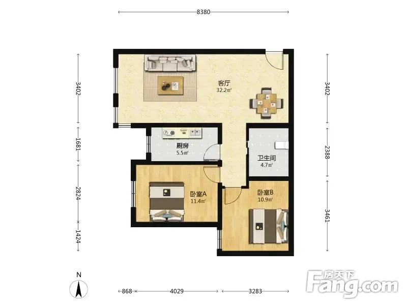 户型齐全,主打户型方正,明厨,明卫,客厅朝南,全明格局,主卧朝南二居