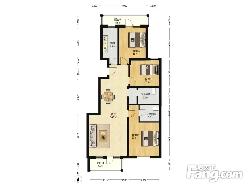 北京风景67号院 3室1厅 118.2平