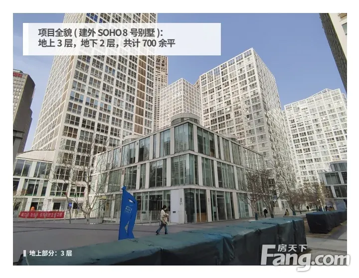 WWG;①建外SOHO东区V8别墅——商业核心位置稀缺商办、传承资产。 ②使用面积大700余平,西南向-2至3层。 ③周边都是写字楼,高端消费群体集聚,便于企业品牌形象惊艳亮相且永不落幕。 小区介绍 国贸中心正对面,是北京的商业心脏。建外SOHO总占地面积为12.28公顷(东西长约760米),总建筑面积约为70万平米,地下建筑面积为19万平米,地上建筑面积约51万平米,由18栋公寓、2栋写字楼、4栋SOHO别墅小型办公房组成,配套设施包括幼儿园和会所。各座楼宇已有数千家公司进驻,居住、工作、休闲、消费融为一体,建外SOHO已成长为繁华热闹的都市生活中心。 周边配套 建外SOHO商铺众多,其中包括星巴克旗舰店、同仁堂旗舰店、渝乡人家旗舰店、东田造型旗舰店、美克美家、温帝吴等众多极具风格的时尚店铺。 交通出行:地铁1号线永安里站500米,开车出来就是建国门外大街,开车十分方便。