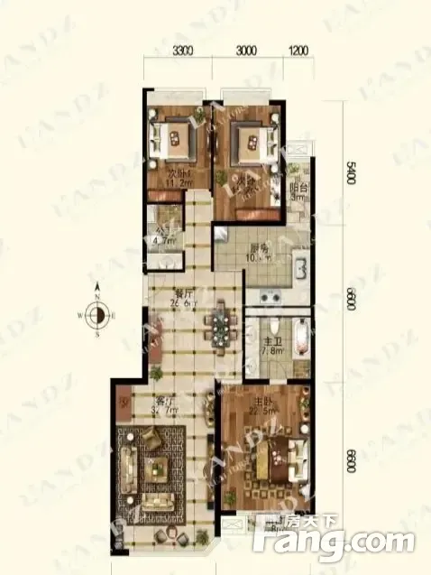户型齐全,主打户型方正,独立衣帽间,客厅朝南,双阳台三居