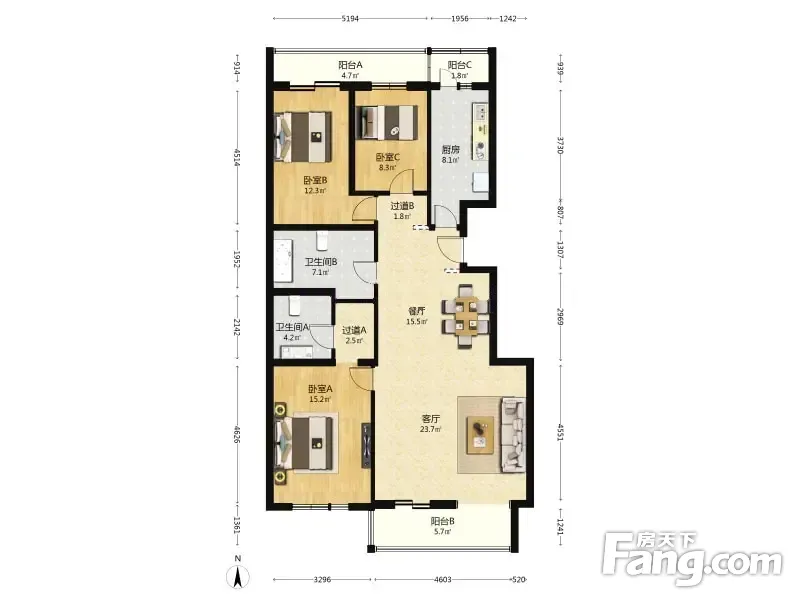 户型齐全,主打明厨,主卧朝南,双阳台三居