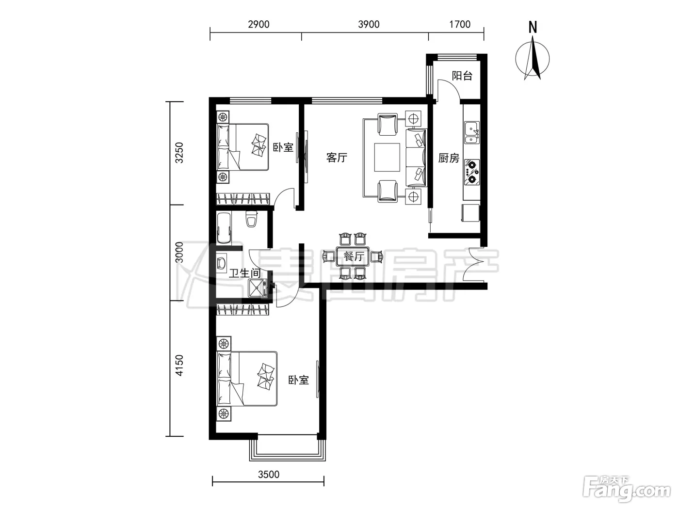 户型齐全,主打户型方正,明卫,客厅朝南,主卧朝南二居