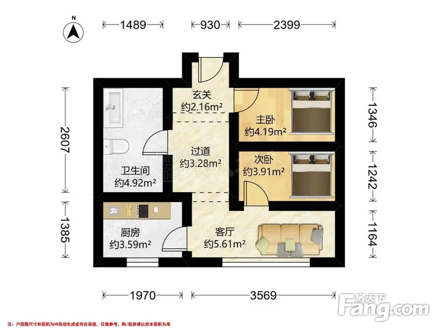 户型齐全,主打明厨,主卧朝南一居