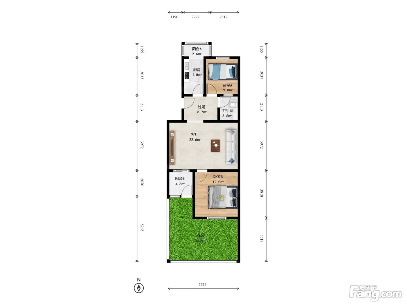 新上1号线地铁临河里南北通透大两居室带个花园,业主诚意出售随