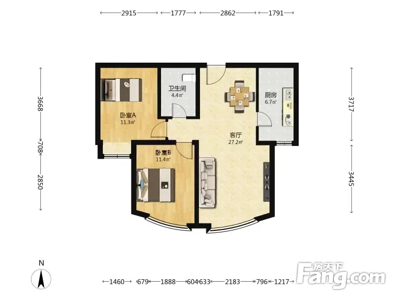 运河湾北区 2室1厅 86.15平