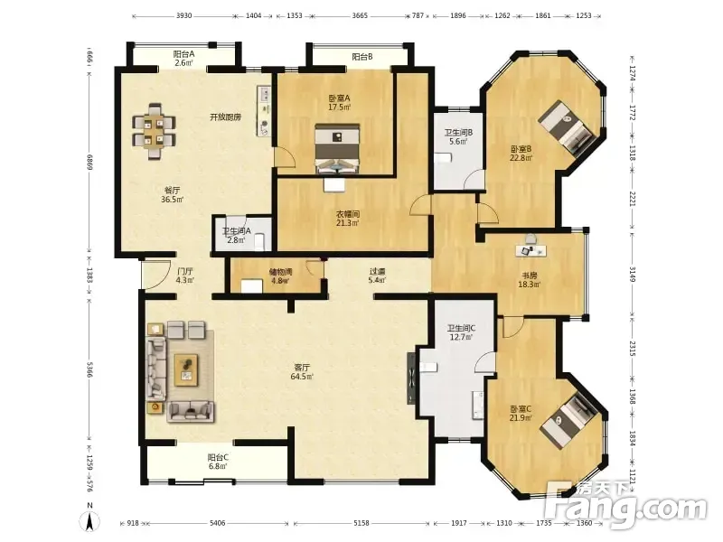 月亮河七星公馆 3室2厅 334.21平