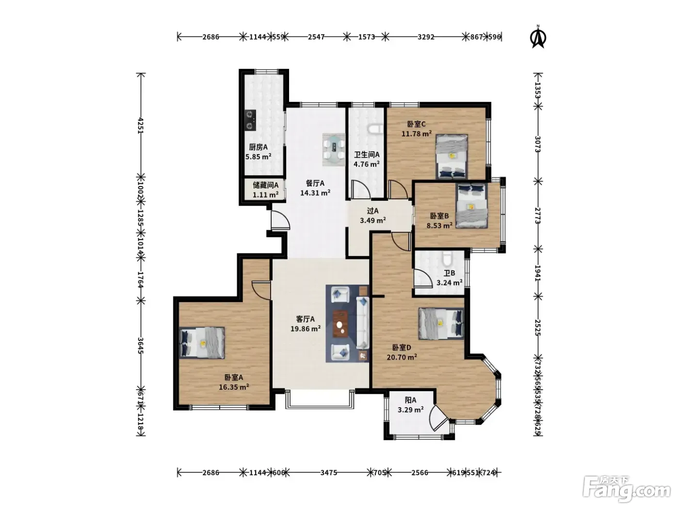 房屋拥有相对宽松的尺寸,布局通透,动静分离,设计豪华