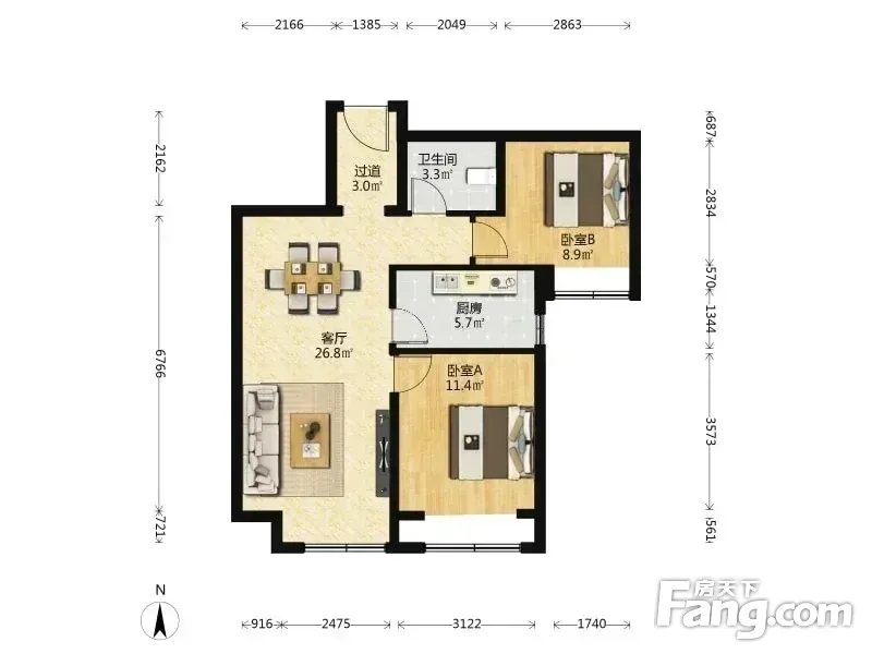 户型齐全,主打全明格局,动静分离二居