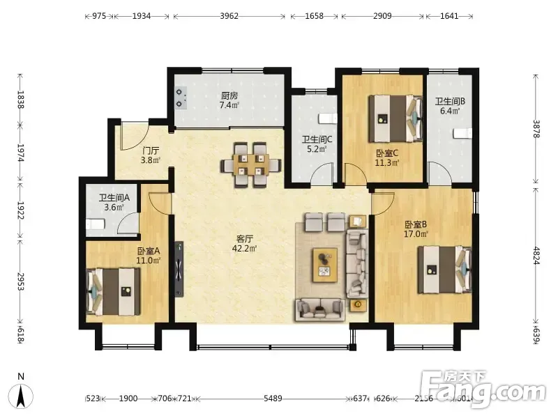 户型齐全,主打南北通透,全明格局三居