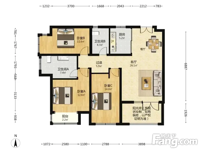 3室2厅1卫