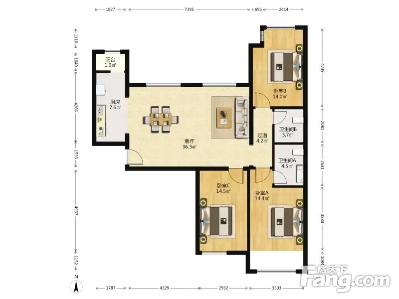 户型齐全,主打户型方正,明厨三居
