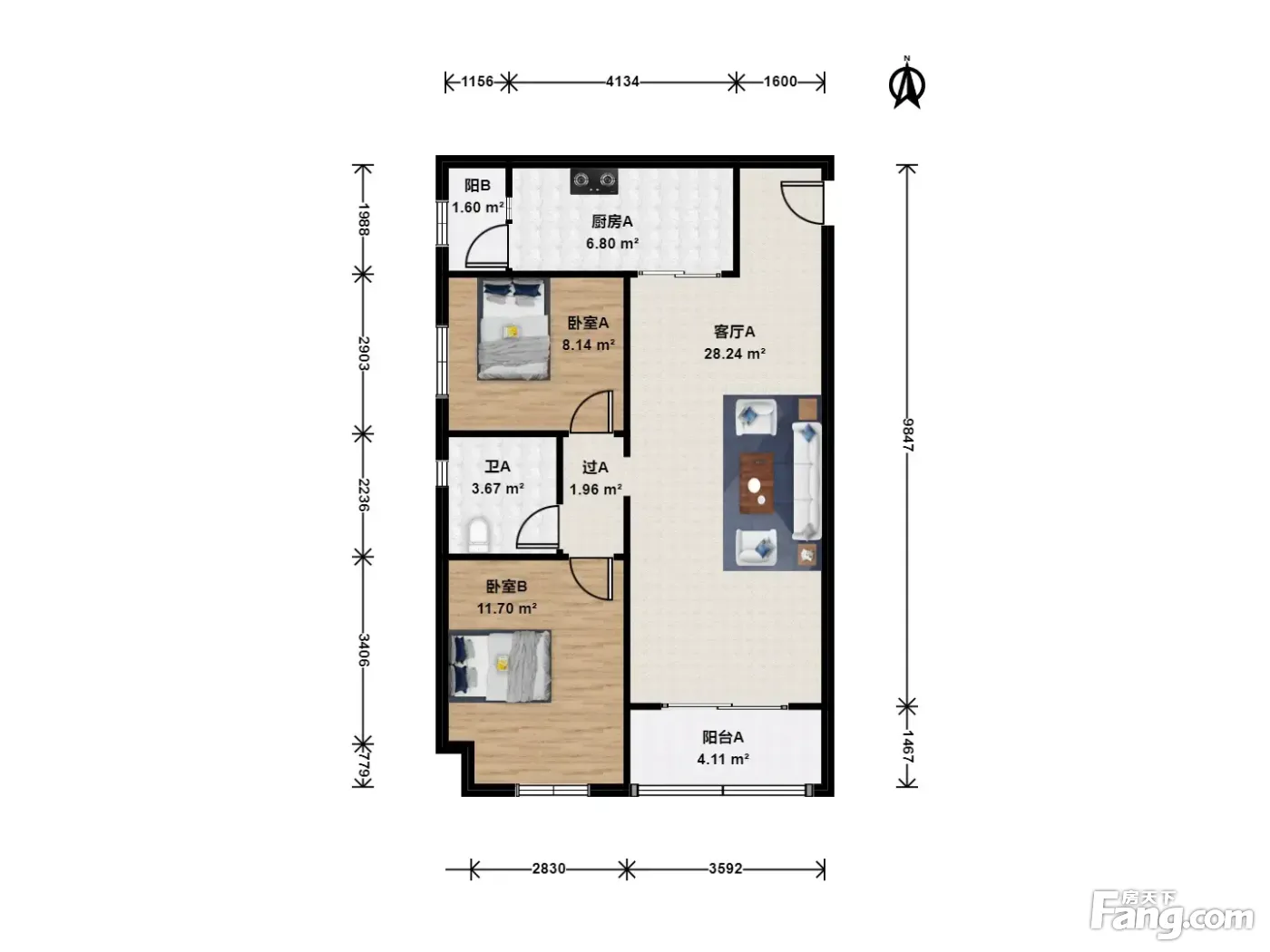 户型齐全,主打户型方正,明卫,独立衣帽间二居