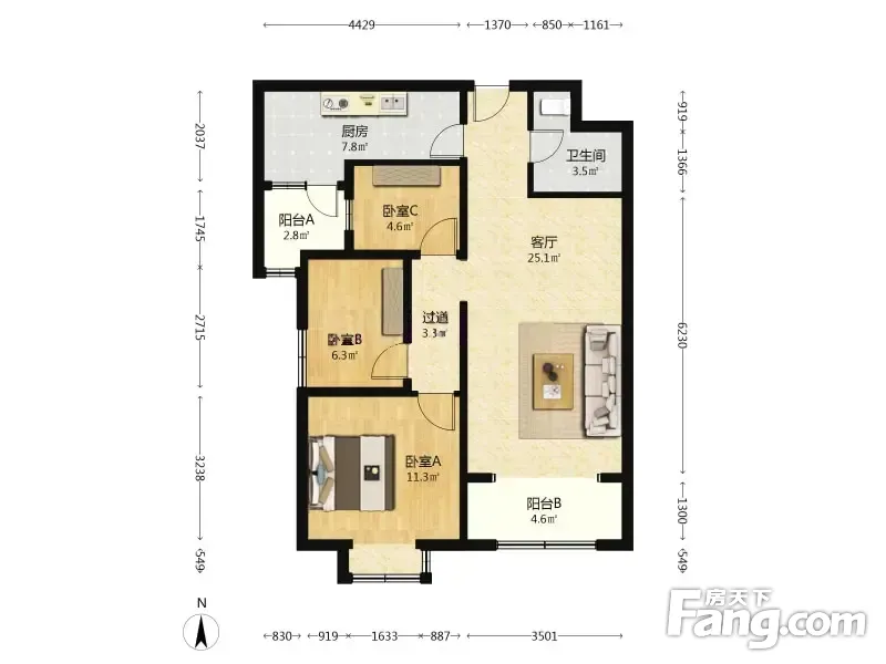 华业东方玫瑰A区 3室1厅 91.86平