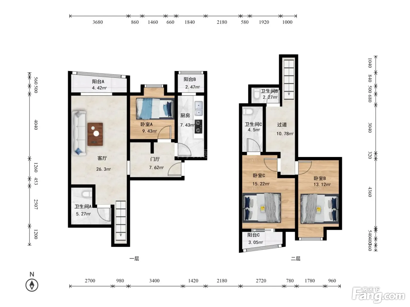 方庄世纪星,高楼层150平米,豪装复式三居,拎包入住