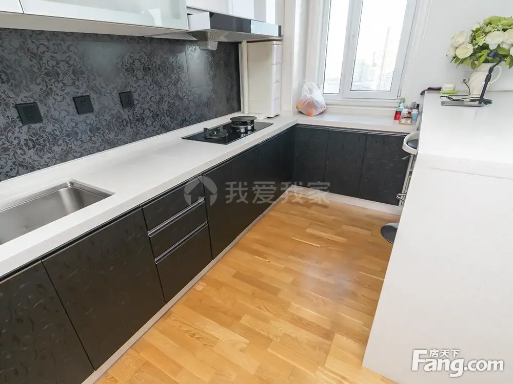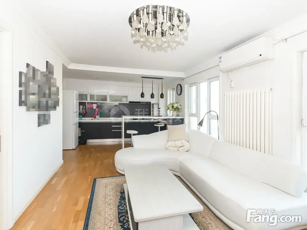 户型介绍:房子是南北通透的两居户型,客厅和次卧朝北,主卧朝南带落地窗阳台,房子户型装修时有过改动,北卧室墙体跟厨房墙体全部打掉了,客厅非常宽敞,开放式厨房,入户感觉非常豁亮,业主做了一个衣帽间,可以储存很多义务
