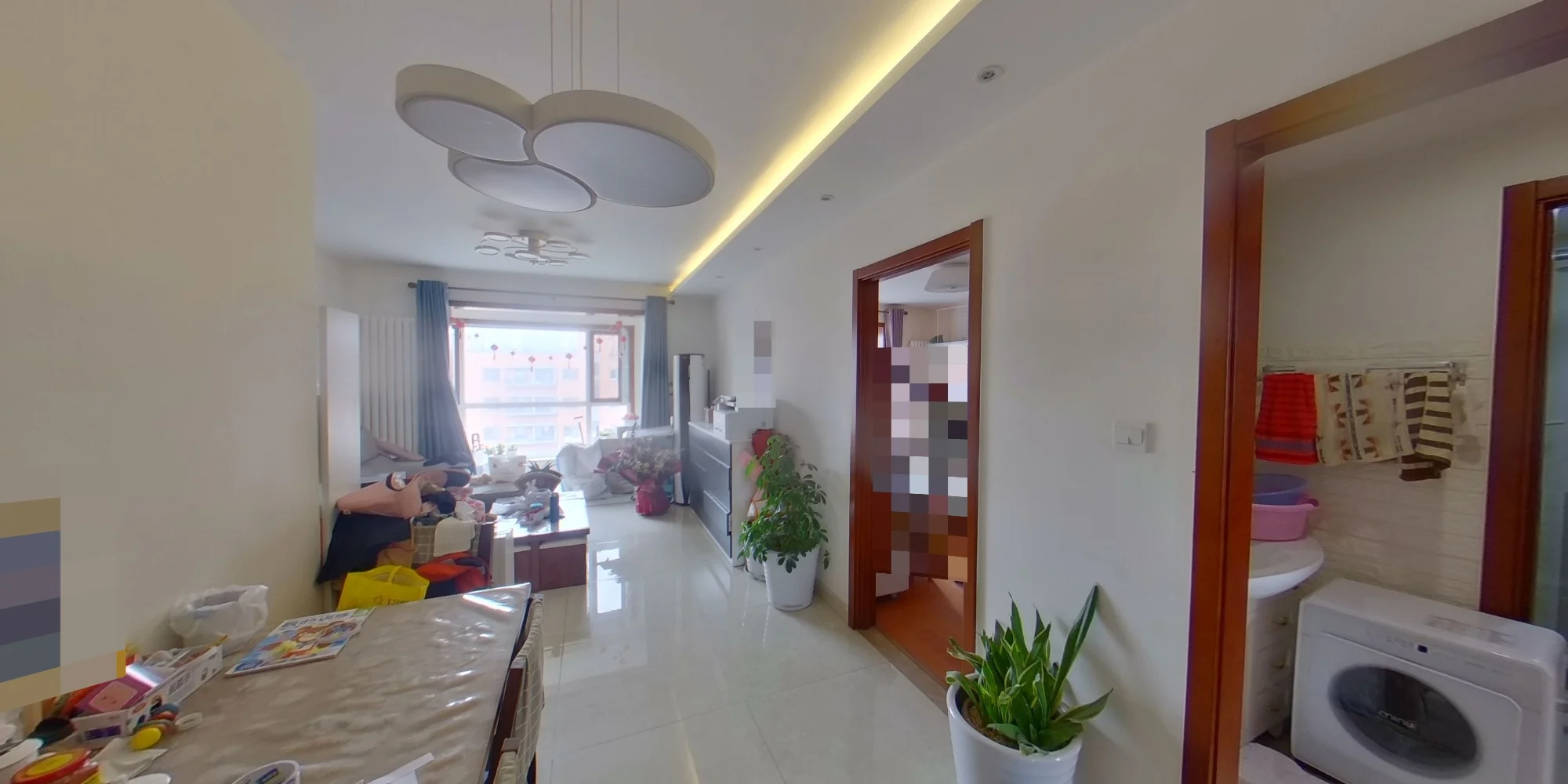 户型介绍:南北通透,客厅主卧朝南,次卧厨房朝北。客厅带大飘窗,采光效果。