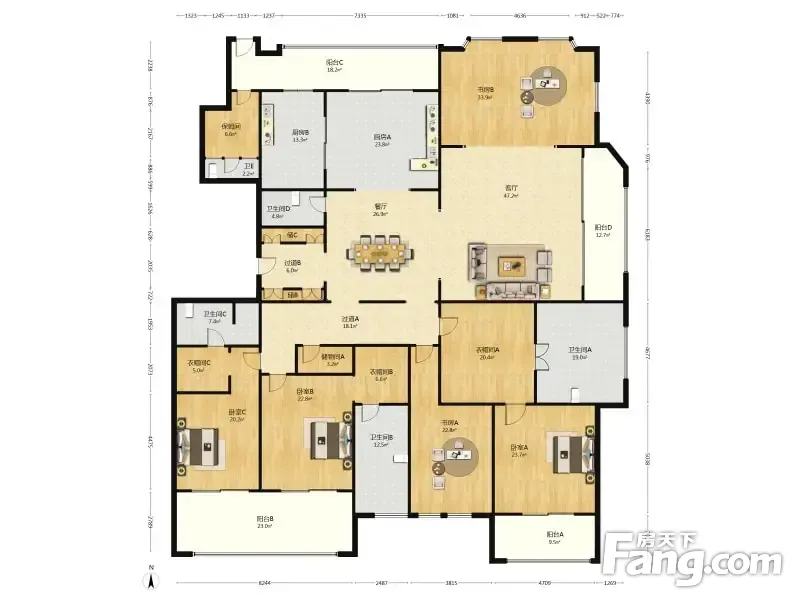 房屋拥有相对宽松的尺寸,布局通透,动静分离,设计豪华
