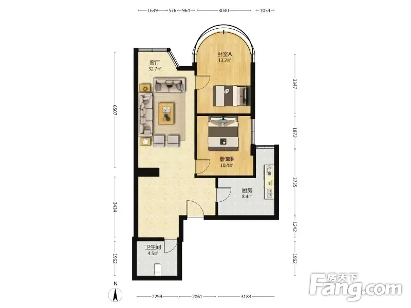 户型齐全,主打明厨,客厅朝南二居