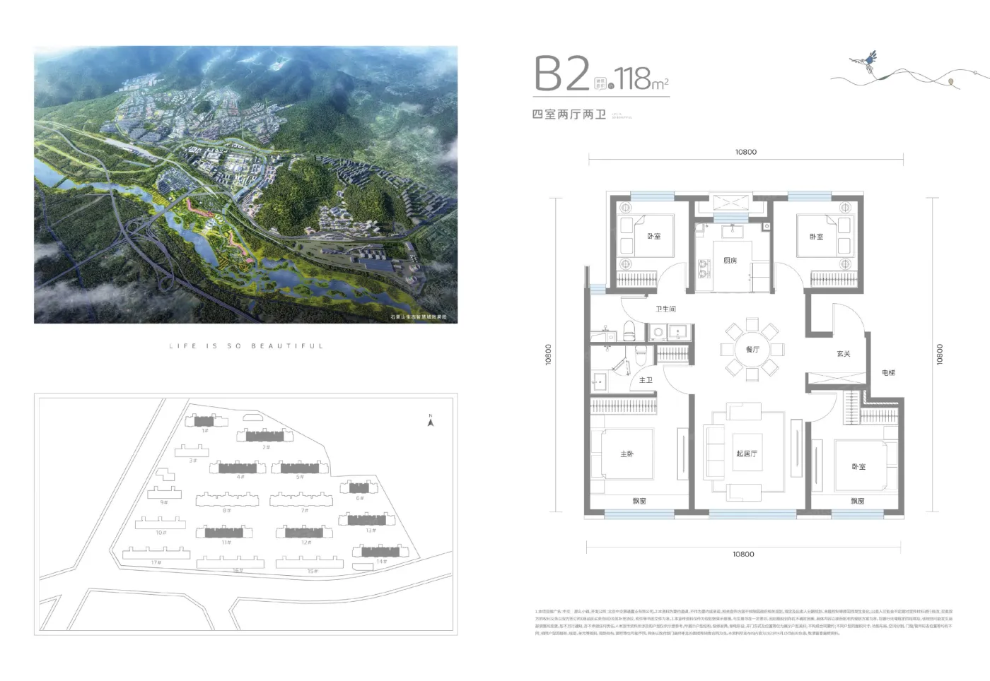 开 发 商:北京中交景通置业有 公司 物业类型:商品房 占地面积:约4.7万㎡ 建筑面积:约9.7万㎡、约地上5.7万㎡、约地下4万㎡ 容 积 率:1.2 绿 化 率:30% :86%左右 楼栋规划:17栋5层低密洋房:95㎡、118㎡、139㎡(一层有下跃,顶层有 ) 总 户 数:500 户 交付时间: 2026年6月30日 车位配比: 1:1.3 梯 户:一梯两户 交付标准:精装修 物业公司:中交物业 物 业 费:5.4 供 暖:市政集中供暖
