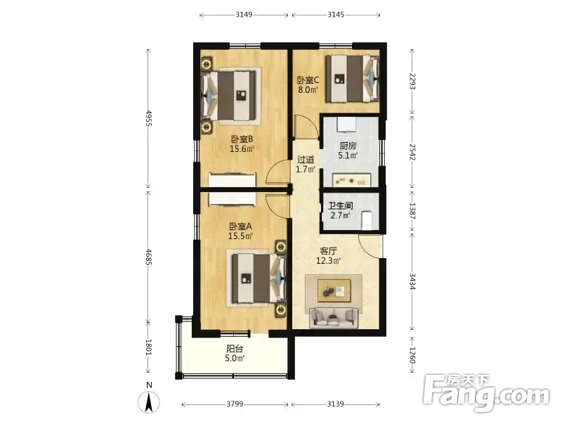 3室1厅1卫