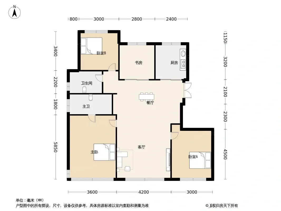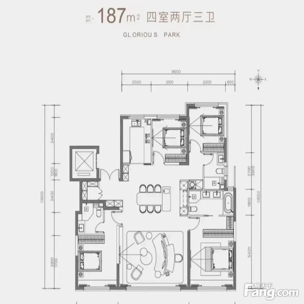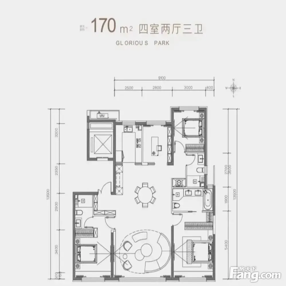 户型齐全,主打南北通透,全明格局,户型方正,动静分离四居