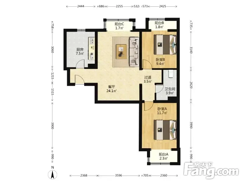 户型齐全,主打户型方正,明厨,客厅朝南,双卧朝南三居