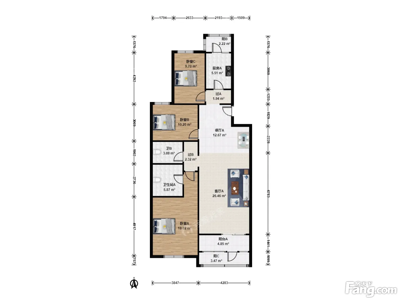 户型介绍:三居室 南北通透 户型好