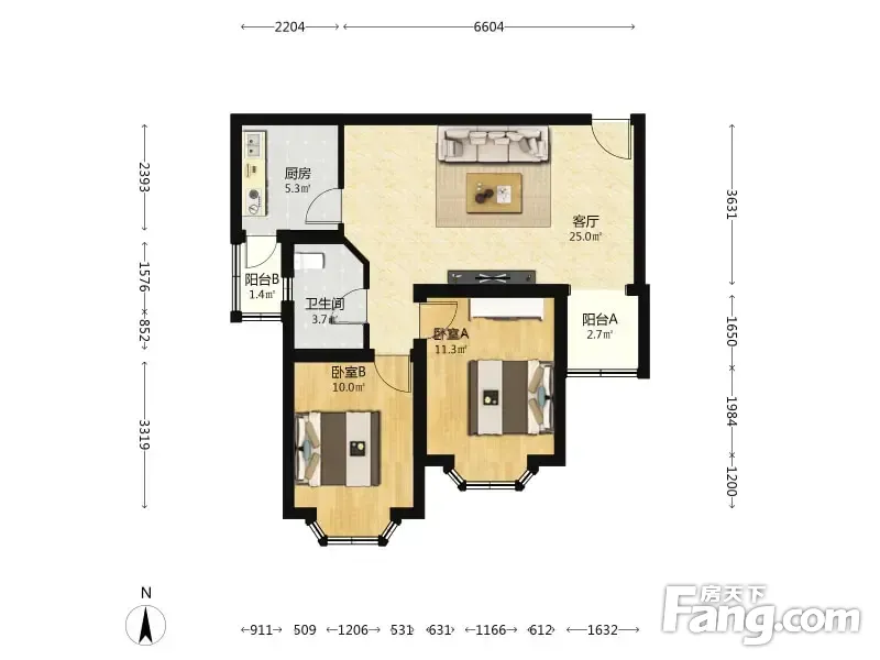 一世情园 2室1厅 76.9平