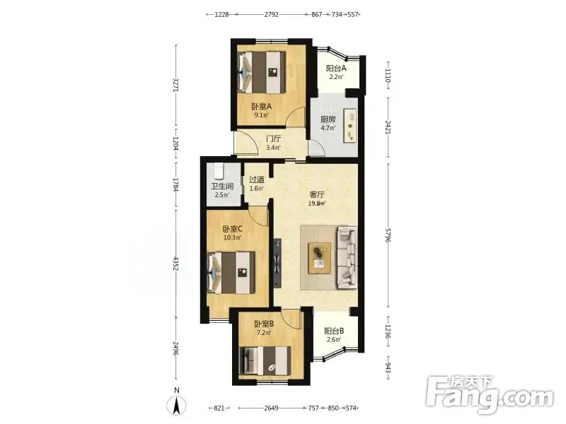 房屋拥有相对宽松的尺寸,布局通透,动静分离