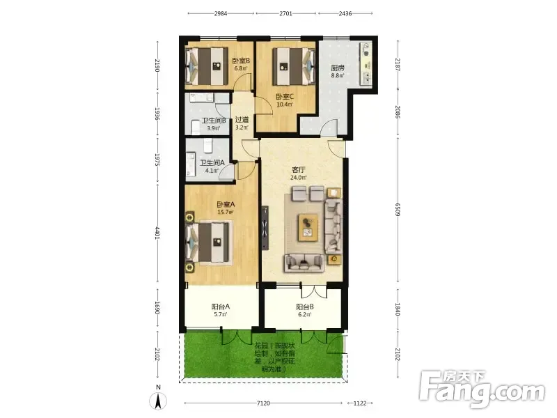 户型齐全,主打户型方正,明厨,明卫,客厅朝南,双阳台二居