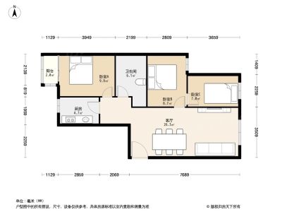 户型介绍:此房户型为3室1厅1卫,建筑面积为88.72平米,朝向为南。