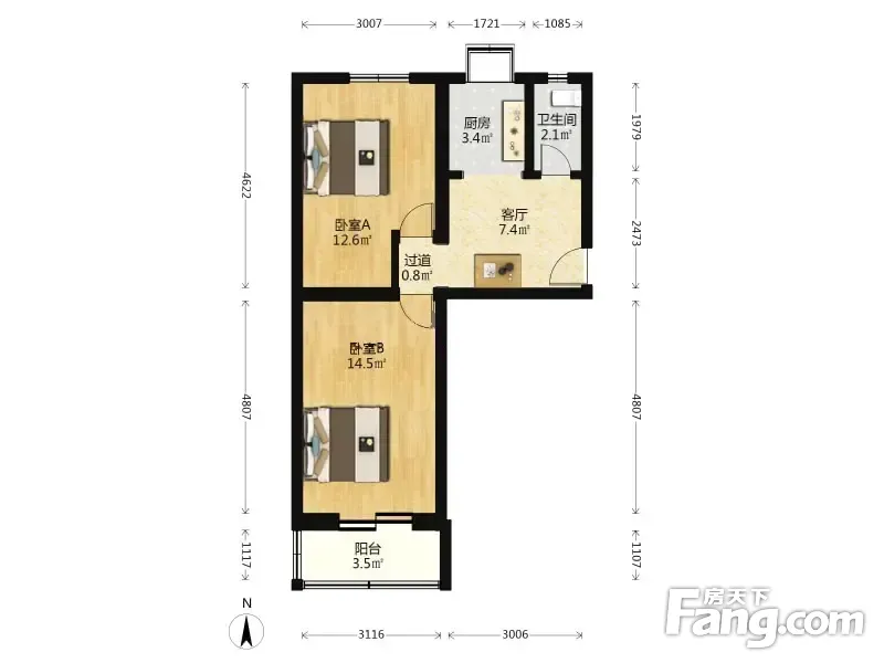 五街满井胡同 2室1厅 59.5平