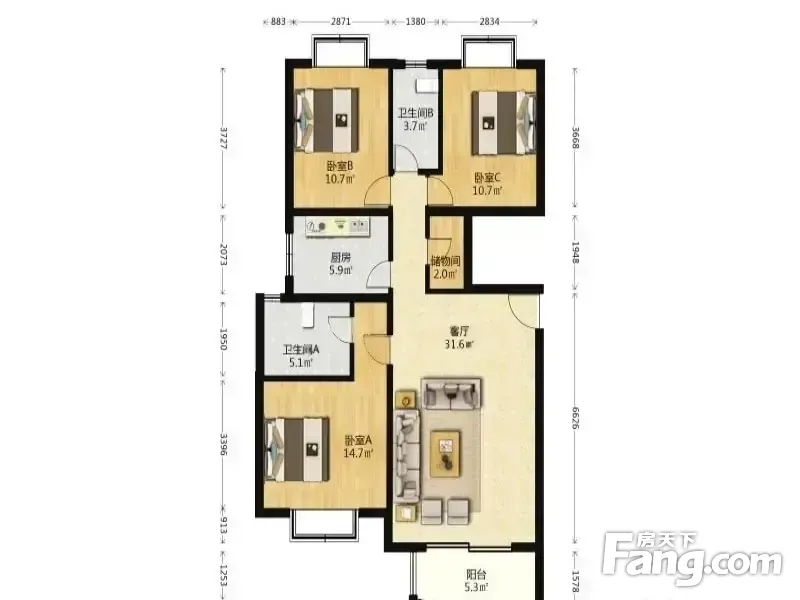 3室1厅2卫