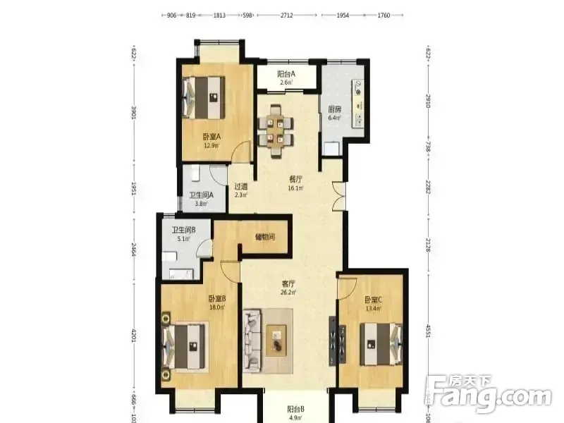 户型齐全,主打户型方正,明厨,客厅朝南,独立衣帽间,明卫,双卧朝南三居