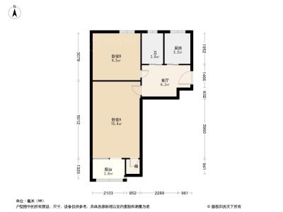 钟界沸0.5 六铺炕 2室1厅 56.35平