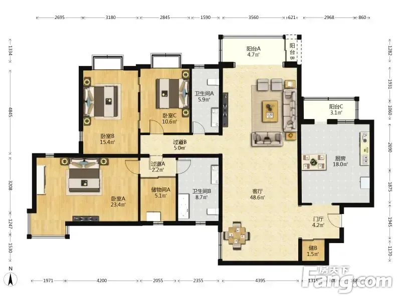 房屋拥有相对宽松的尺寸,布局通透,动静分离,设计豪华