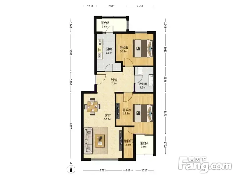户型齐全,主打户型方正,客厅朝南,双阳台二居