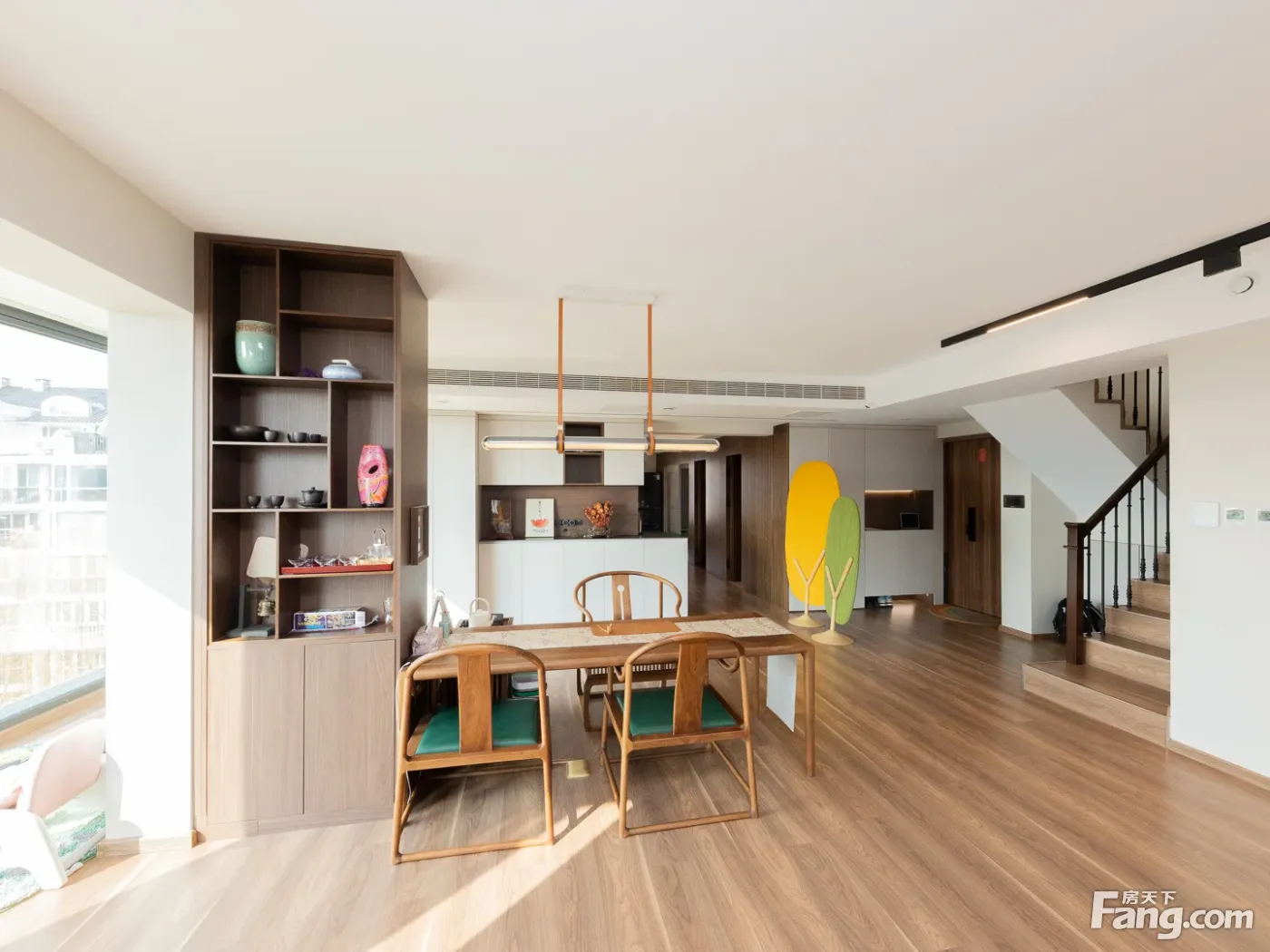 户型:此房是万泉新新家园的经典五居复式南北通透,西边户多了几个阳台,采光充足 本房户型方正,空气对流效果不错,通透性好。如果您是自己住,我个人认为这个房子是相当有优势的。 交易费用:房本满两年,目前自住,看房子提前预约房子是万泉新新家园27号楼的复试,业主21年买的,装修花了2年时间,户型改动比较大。 一楼南向主卧室带卫生间,南向客厅带拐角阳台,业主做的大落地窗,西向餐厅位置业主做的茶桌,北向两个卧室业主做的中厨和西厨。二楼南向主卧室带卫生间,南向客厅带一个20平米阳台,一间次卧室朝北,还有一个北向阳台。 三楼业主做了一间主卧室。