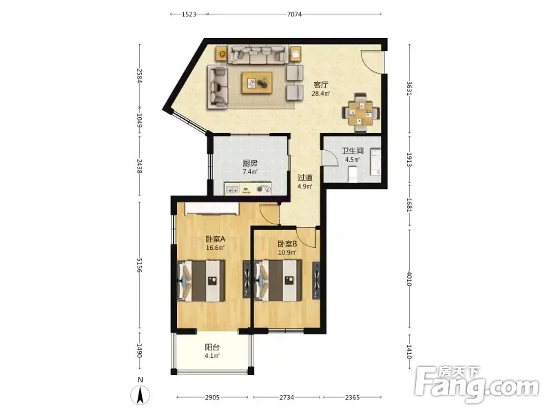 户型齐全,主打明厨,客厅朝南二居
