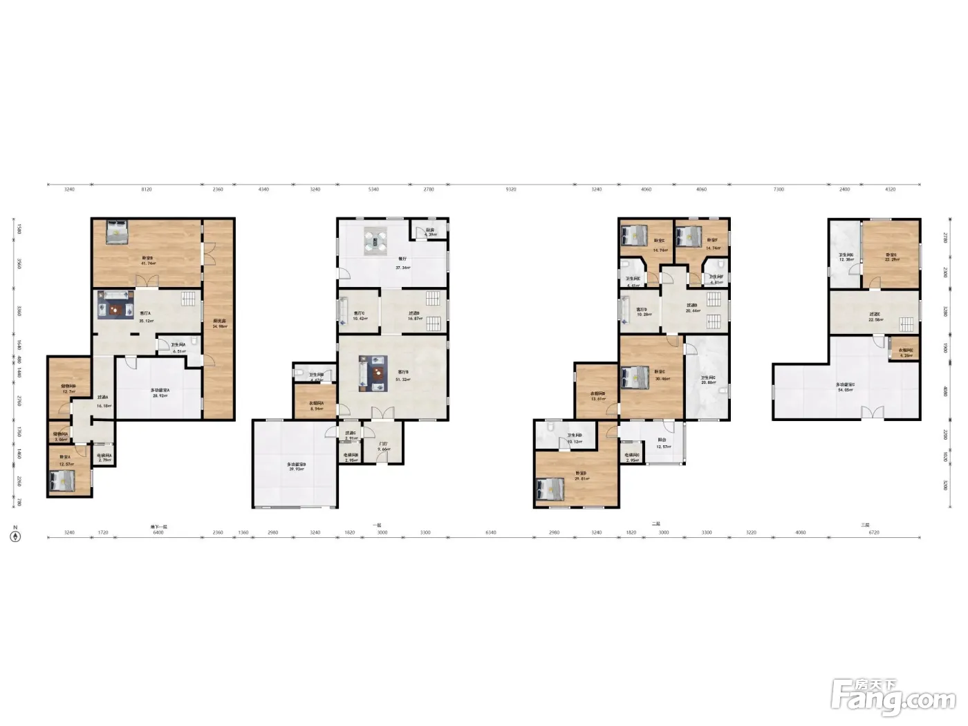 户型介绍:房子6居室,一层长辈房,带电梯到每一层,开放式厨房餐厅,二层起居室,地下多功能活动空间大,北侧集中绿地。