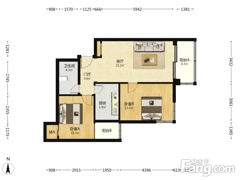 (买方零拥)今日家园 2室1厅 98.36平