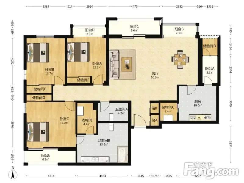 户型齐全,主打独立衣帽间,客厅朝南三居