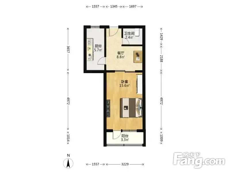 钟界沸0.5 安贞西里 1室1厅 46.23平